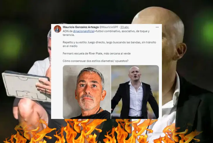 "ADN de @nacionaloficial=fútbol combinativo, asociativo, de toque y tenencia. Repetto y su estilo: Juego directo, largo buscando las bandas, sin tránsito en el medio Fermani: escuela de River Plate, más cercana al verde", fue lo que menciono en su cuenta de X, con la que muchos hinchas saltaron en dos bandos, tanto a favor como en contra de sus declaraciones, las cuales han causado polémica.